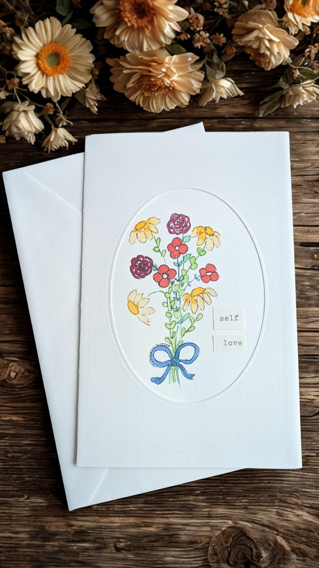 Dites-le lui avec des fleurs non périssables ! Ici, douceur et tendresse pour cette carte originale, peinte par mes petites mains sur du papier de qualité.