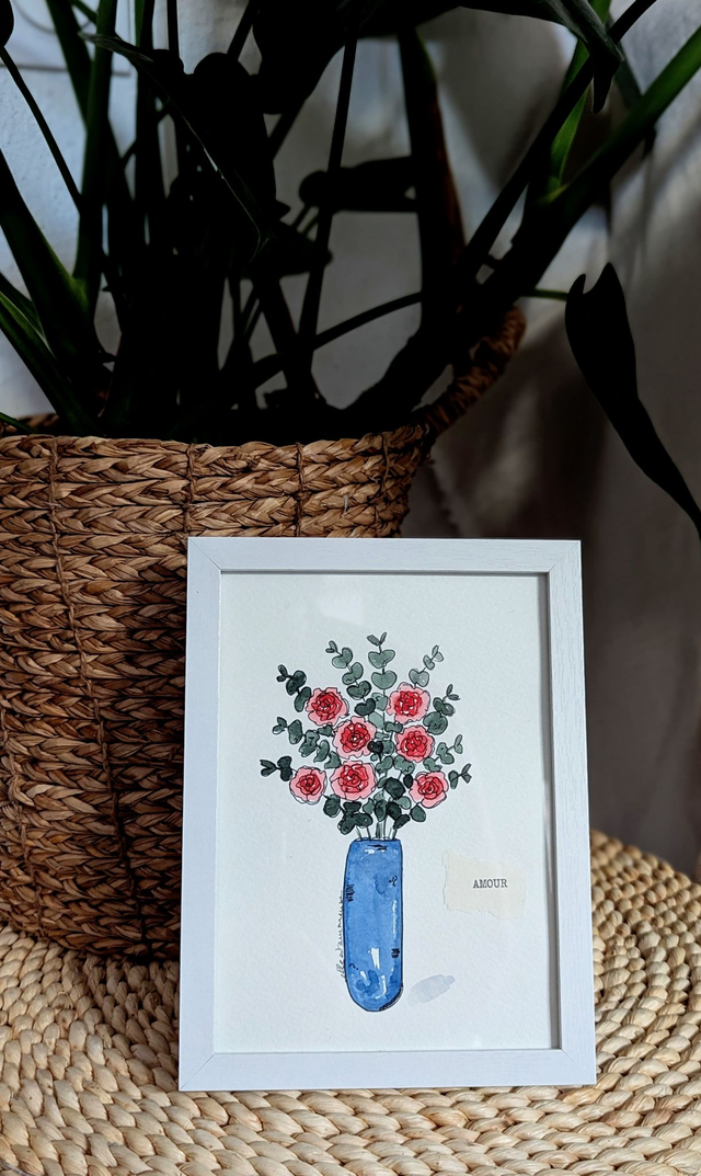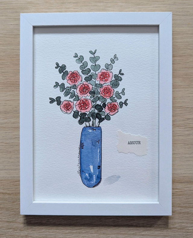 Dites-le lui avec des fleurs non périssables ! Ici, douceur et tendresse pour cette aquarelle originale, peinte par mes petites mains sur du papier de qualité.